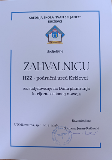 Dan planiranja karijera i osobnog razvoja održan je 20. ožujka u Srednjoj školi „Ivan Seljanec“ Križevci s ciljem povezivanja učenika s poslodavcima i obrazovnim institucijama te predstavljanja mogućnosti obrazovanja i usavršavanja, kao i svijeta rada koji ih očekuje nakon završetka školovanja. Tom prilikom poslodavci iz različitih sektora te visokoškolske obrazovne ustanove, kao i ustanove koje se bave razvojem karijere, usavršavanjem, obrazovanjem odraslih te savjetodavnim radom i mladima, predstavile su svoje usluge srednjoškolcima.