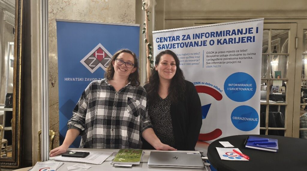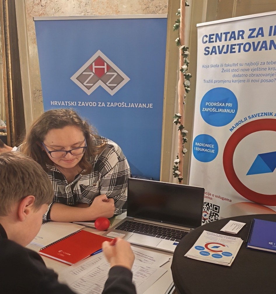 Naša uloga na sajmu bila je informiranje i savjetovanje neodlučnih učenika o izboru zanimanja i srednje škole. Učenici su imali priliku rješavati kratke upitnike profesionalnog usmjeravanja te vidjeti kako bi izgledalo savjetovanje o izboru karijere. Osim toga, predstavljena im je web stranica Razvoj karijere s korisnim alatima i opisima zanimanja.