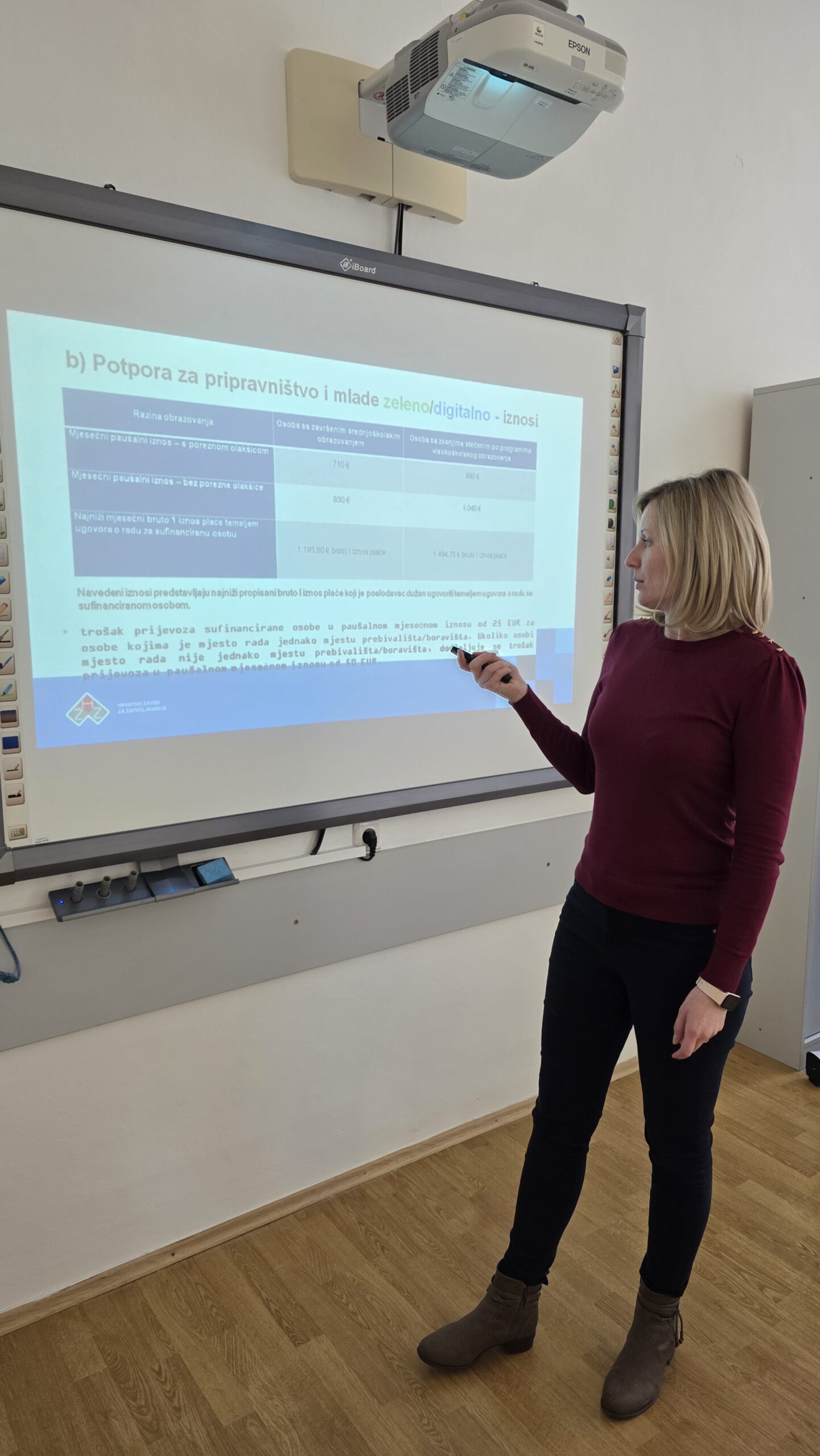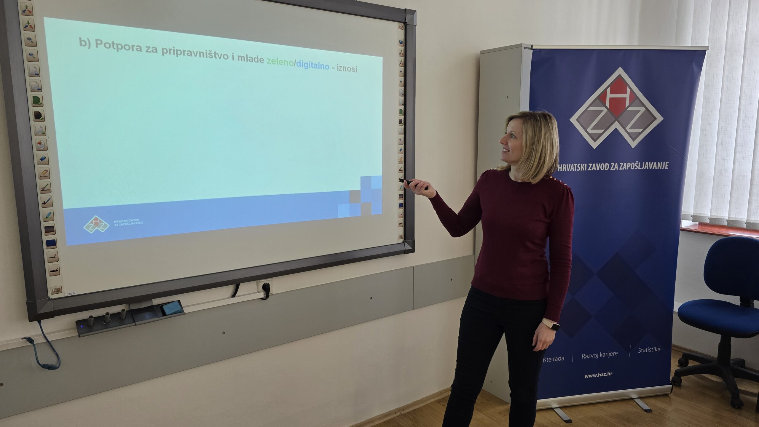Poslodavcima su predstavljene mjere potpora za zapošljavanje, pripravništvo i mlade, s naglaskom na zeleno/digitalno, potpore za zapošljavanje osoba zaposlenih u program Posao+, potpore za usavršavanje i osposobljavanje na radnom mjestu.