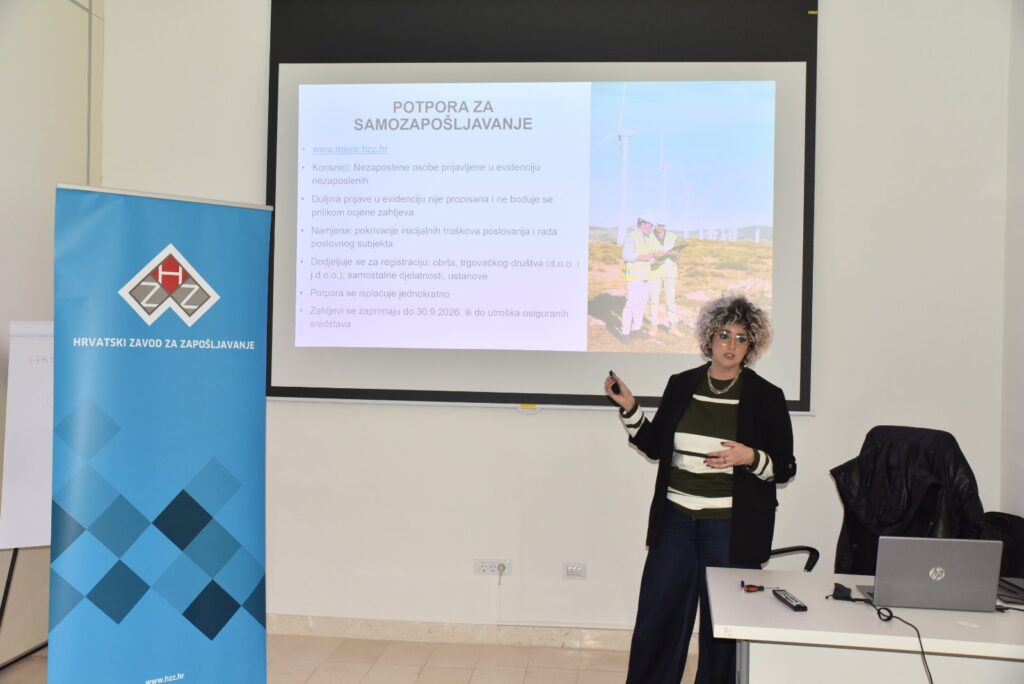 Sudionicima su predstavljene mjere za zapošljavanje, zapošljavanje u zelenim i digitalnim djelatnostima, kao i mjere samozapošljavanja te samozapošljavanja u zeleno-digitalnom sektoru. Kroz interaktivnu raspravu i pitanja, sudionici su imali priliku detaljno se upoznati s uvjetima korištenja pojedinih mjera.