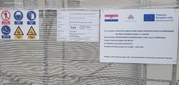 Potpisom ugovora o izvođenju radova energetske obnove, 22.10.2025. između Hrvatskog zavoda za zapošljavanje i izvođača radova „Iver“ d.o.o. iz Osijeka započeli su radovi na energetskoj obnovi Hrvatskog zavoda za zapošljavanje Područnog ureda Vukovar.