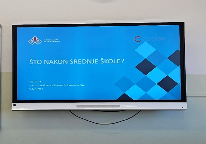 Nakon samoprocjene vlastitih sposobnosti i interesa, učenici su informirani o mogućnostima nakon srednje škole – upis na fakultet, uključivanje na tržište rada ili u obrazovanje odraslih. Saznali su više o vrstama studija i kriterijima upisa na fakultet, o prijavi na Hrvatski zavod za zapošljavanje i uslugama koje nudi, uvježbali su predstavljanje poslodavcu za traženje prvog posla, ali i informirali se o vaučerima za obrazovanje kao još jednoj mogućnosti koju imaju nakon završetka škole.