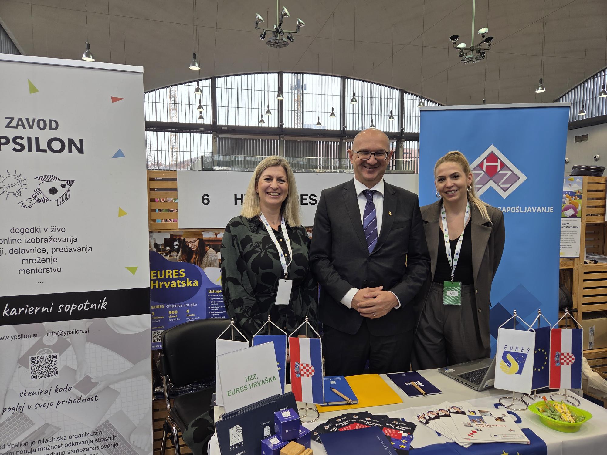 Delegacija je prisustvovala slovenskom Sajmu poslova i karijere, koji je organizirao Zavod za zapošljavanje Slovenije u Ljubljani, gdje su ravnateljica Greta Metka Barbo Škerbinc i voditelj Europskog nadzornog tijela za rad i EURES-a, Balázs Lengyel službeno otvorili Europski online dan poslova (EOJD), koji se prvi put održao paralelno s nacionalnim događajem uživo. Održavanje sajma poslova u hibridnom obliku pružilo je priliku poslodavcima, tražiteljima zaposlenja i EURES savjetnicima da sudjeluju uživo dok je istovremeno postojala mogućnost i virtualnog sudjelovanja.